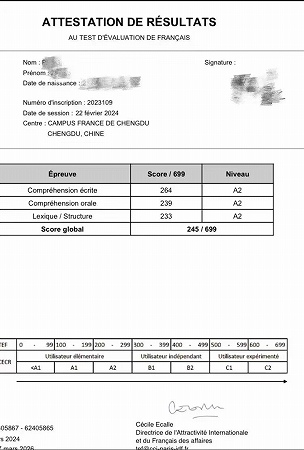 彭志豪通过法语欧标等级考试A2