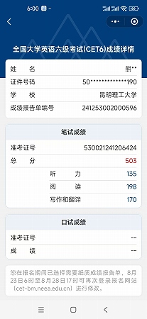 熊城铭通过大学英语六级